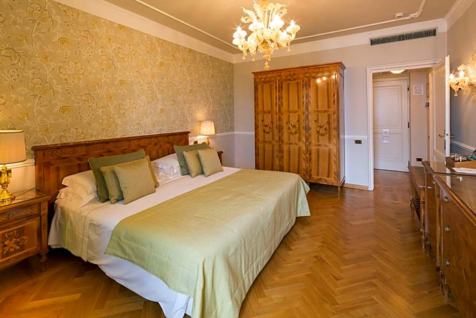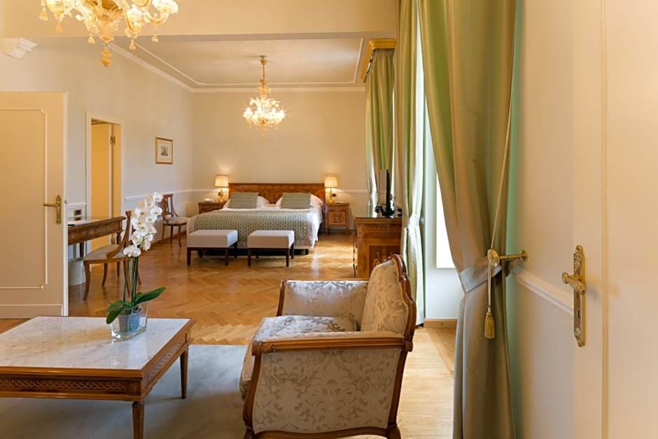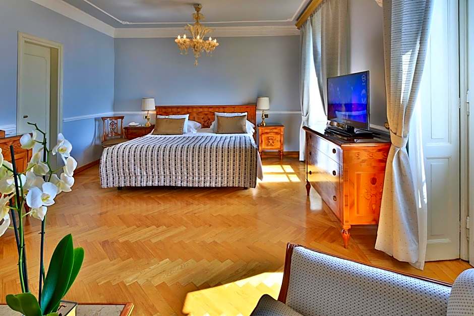 Located in the historical wing of the hotel, this suite offers full views of the sea. Features antique fittings, high ceilings, and a Murano glass chandelier. The marble bathroom is complete with bath.