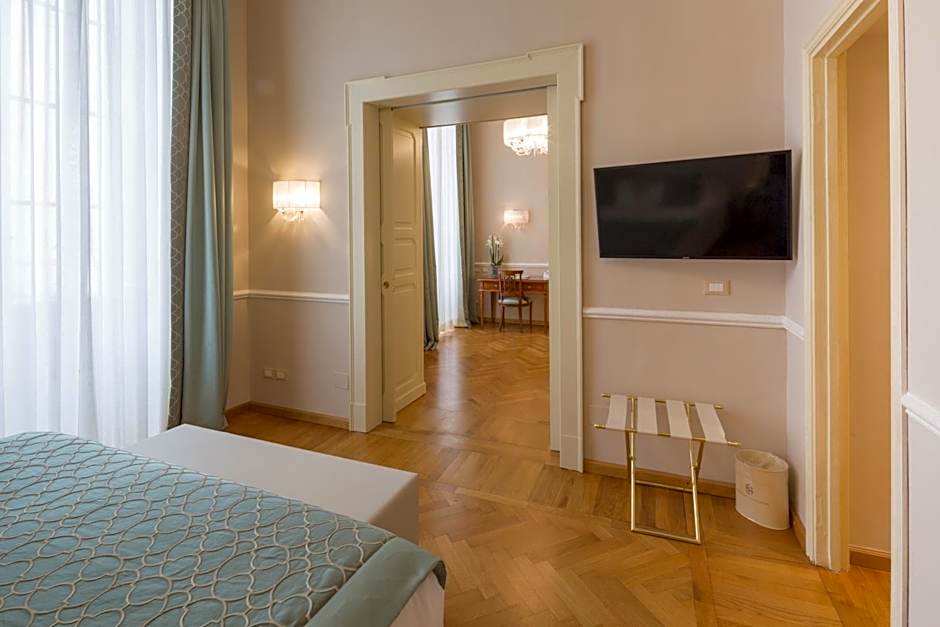 This elegant suite features a separate living room, parquet floors and 2 marble bathrooms with a shower and bath tub.